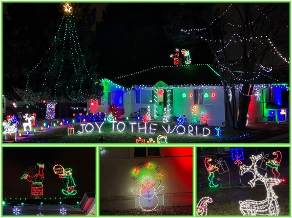 12,000 lights in Denver. We have Santa and his elf on the roof, Rudolf and a sleigh, Grinch, Max the dog, and so much more. Come see our 25 foot Joy To The Word design and our 35 foot tall tree design. |