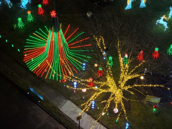 Over 150,000 synchronized Christmas lights set to music at a residential home in Tinton Falls, New Jersey. Silvercrest Illuminations runs nightly from 5:00 PM to 12:00 AM, from Black Friday through January 2, at 70 Silvercrest Drive, Tinton Falls, NJ 07712. Visitors can tune their car radios to 87.9 FM to hear the music as they drive past. A QR code at the display links directly to the Monmouth County SPCA’s online donation page for anyone who would like to support the shelter. Please drive slowly, do not block driveways, and be courteous to neighbors. |